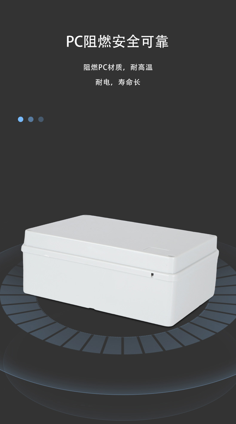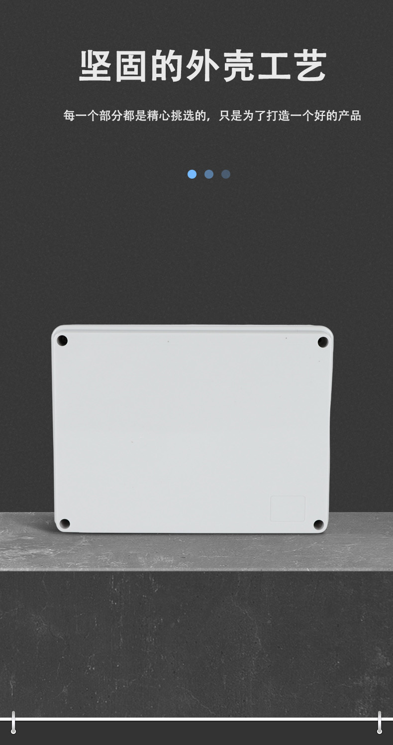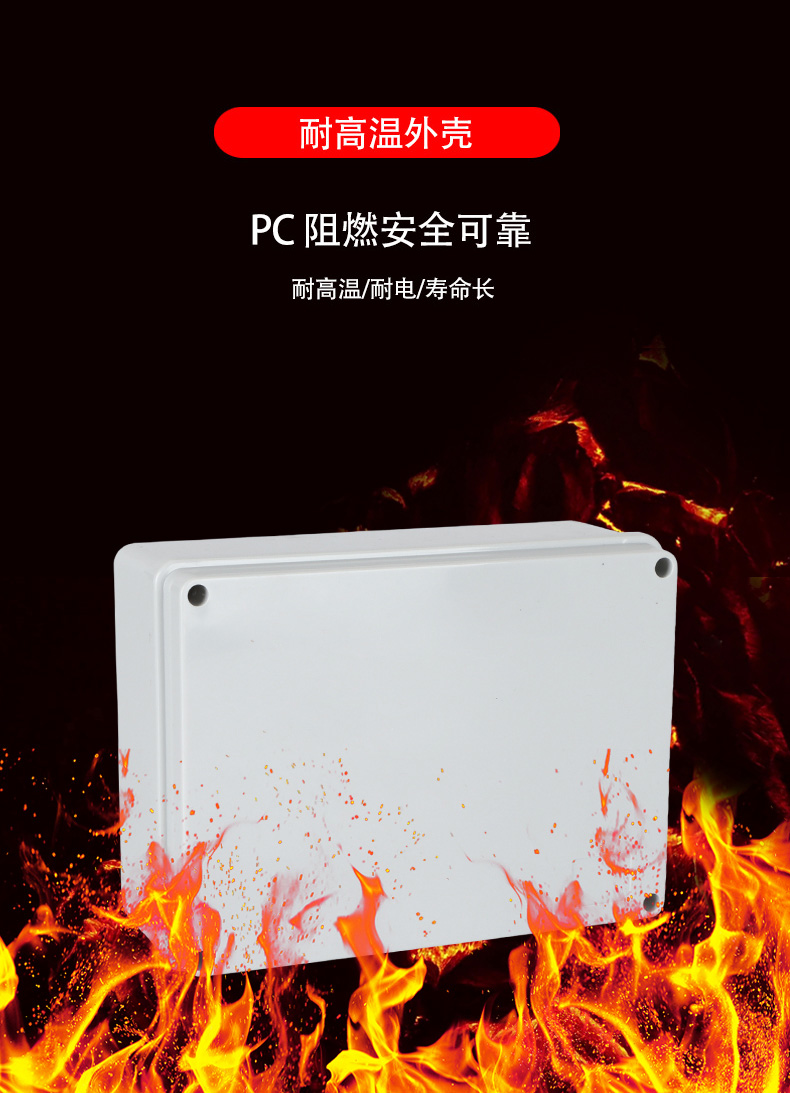多重密封/安全防水 防水IP等級(jí) (IP44)可供選材料(常ABS)ABS阻燃、PC,合金材PC阻燃安全可靠/耐高溫/耐電/壽命長(zhǎng)每一個(gè)部分都是精心挑選的,只是為了打造一個(gè)好的產(chǎn)品