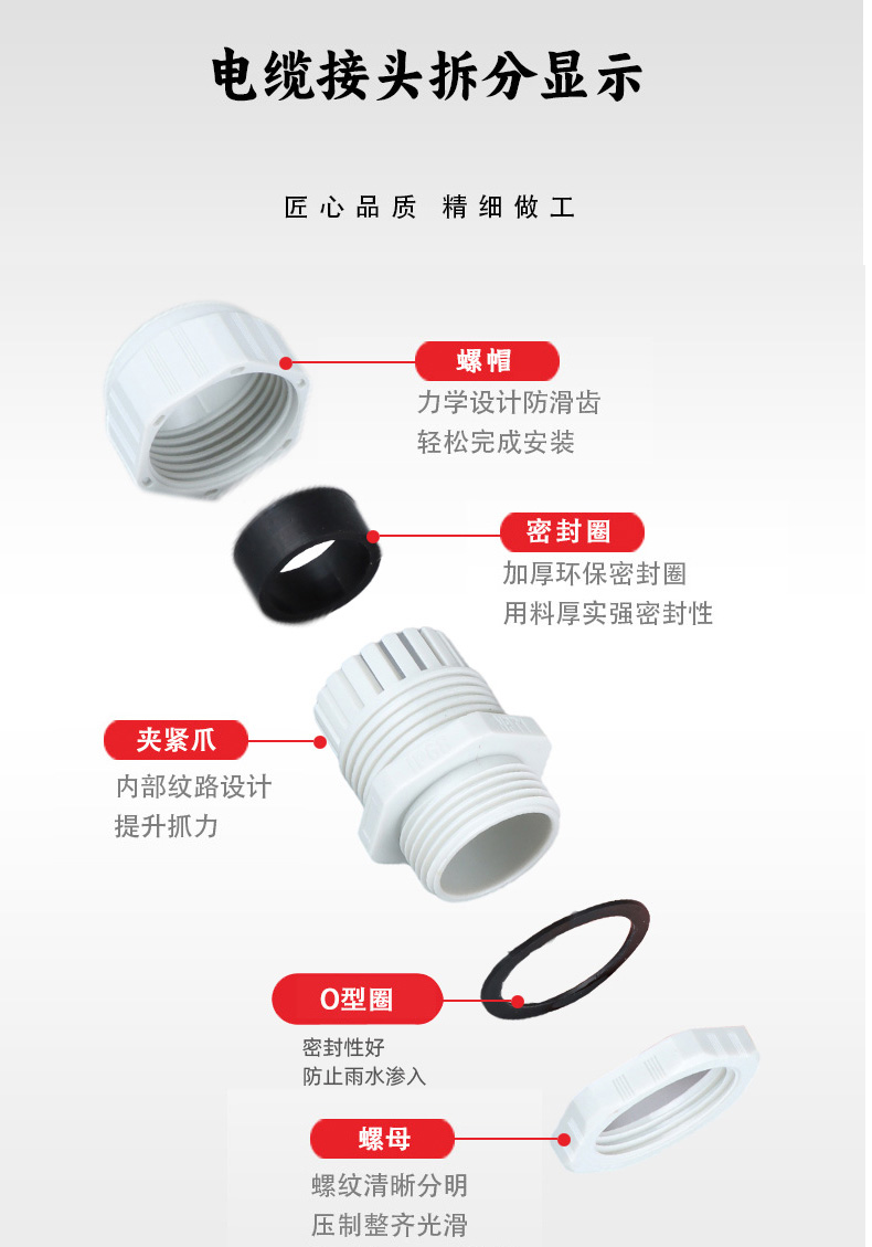 高密封性防水接頭保護(hù)電纜安全,長(zhǎng)期使用不容易滲水