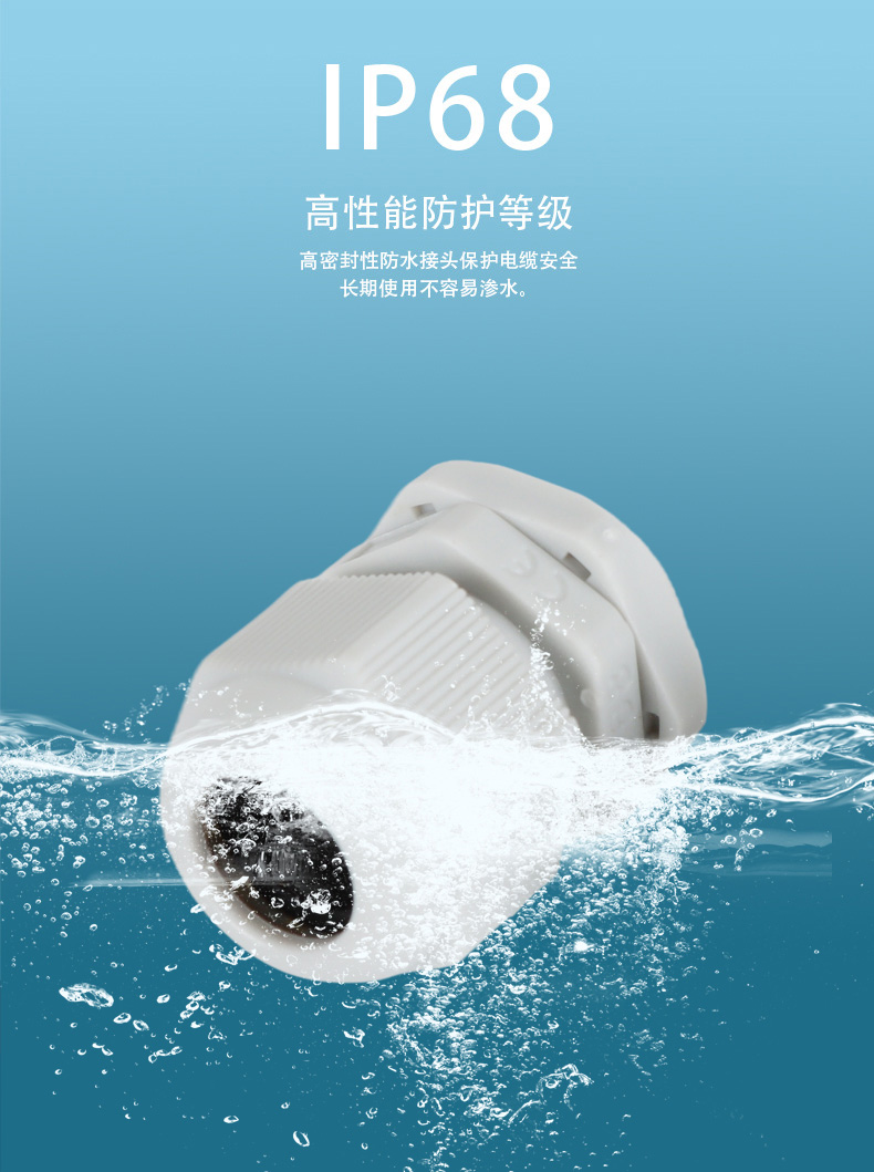 尼龍材質(zhì)適用惡劣環(huán)境紅、灰、黑、深灰、白、藍 六種顏色常規(guī):黑、灰兩種顏色,其它顏色需要定做在嚴寒與高溫等惡劣環(huán)境下,保持長期不開裂不漏水高密封性防水接頭保護電纜安全,長期使用不容易滲水
